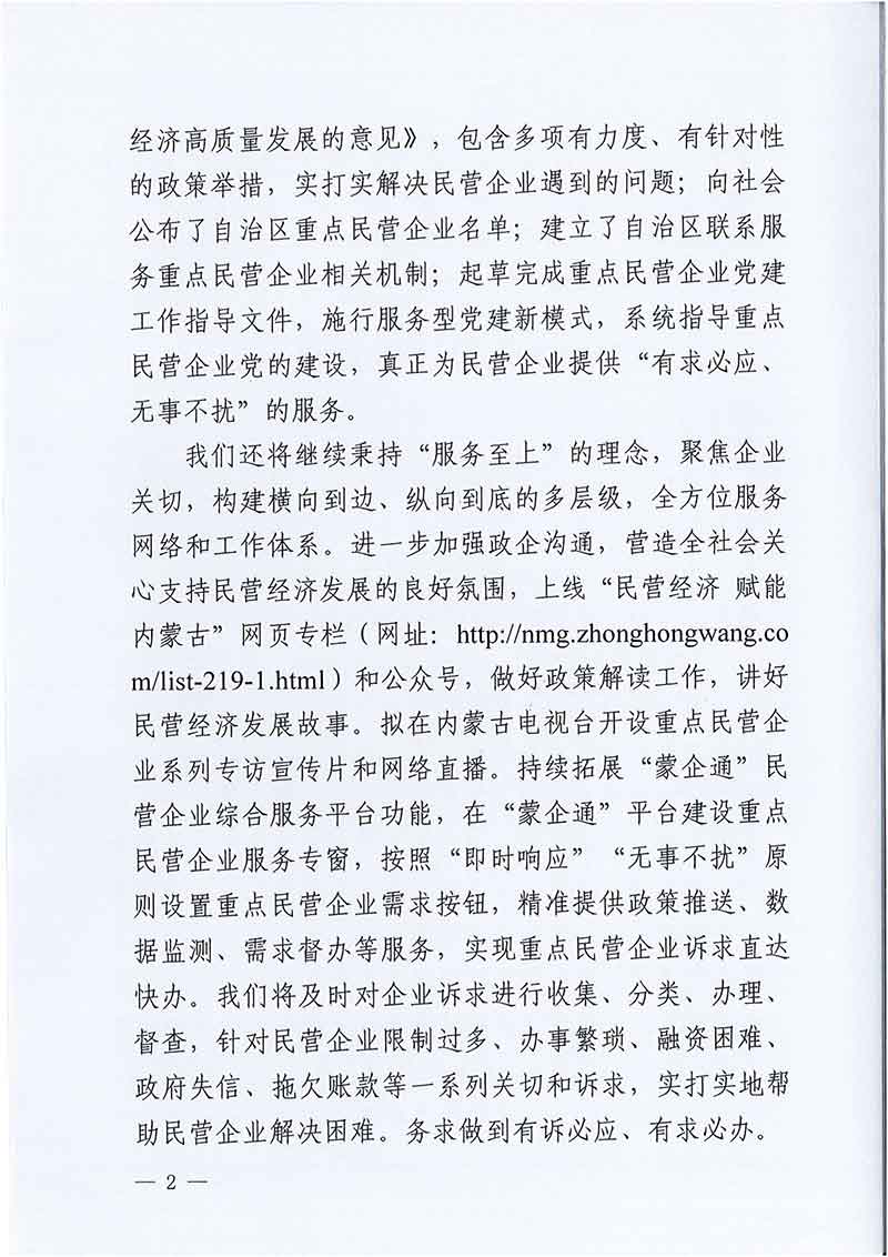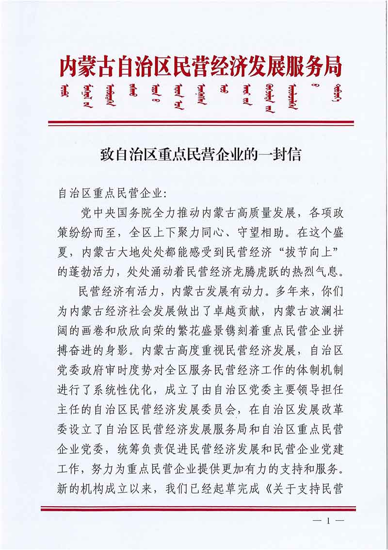致自治區(qū)重點(diǎn)民營(yíng)企業(yè)的一封信